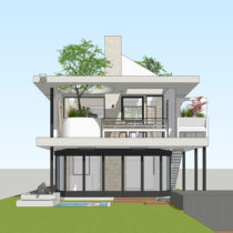 三重 人、建筑、自然。 人:建筑的主人,自然的悟者。 建筑:人在建筑中诗意栖居的载体。 自然:人与建筑取法自然而超越自然。 三重, 建筑提供了三处不同的院与园,三处与人、与自然、与天的对话场所。 庭院,嬉戏冥想之所,宁静、隐私。任四季朝夕在光影中流转,在空气中奔涌。 方中有圆,圆后有园,非曲径才可通幽。 是框景?是借景?还是矜持的招引? 月亮门上书“YUAN YE”,是圆也?缘也?园也?园冶?观者自推敲。 庭园的植入,一叶可知秋,一叶可弊目,一花一世界,一思一轮回。 游廊,可居、可游、可行、可望。 游廊的二重空间,半明半暗,半内半外。既可遮夏日之阳,又能廊下听雨、品茶、赏池、望天。 间的再生,是模数,是序列。空间流动,相观相生。 与天对话的禅意空间。